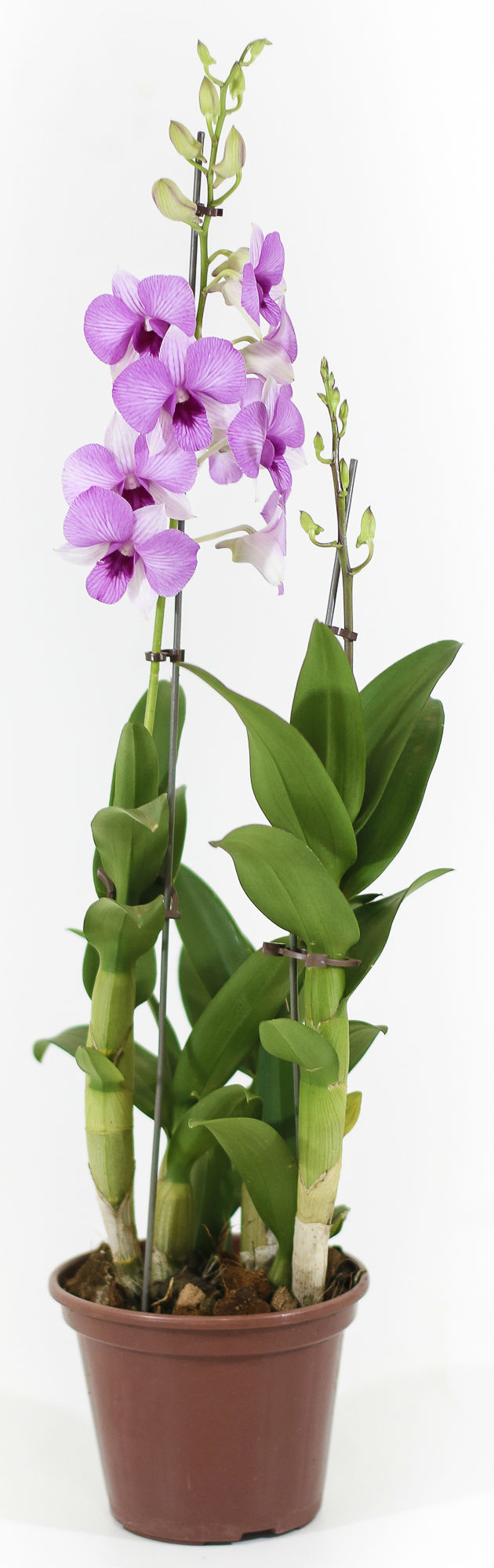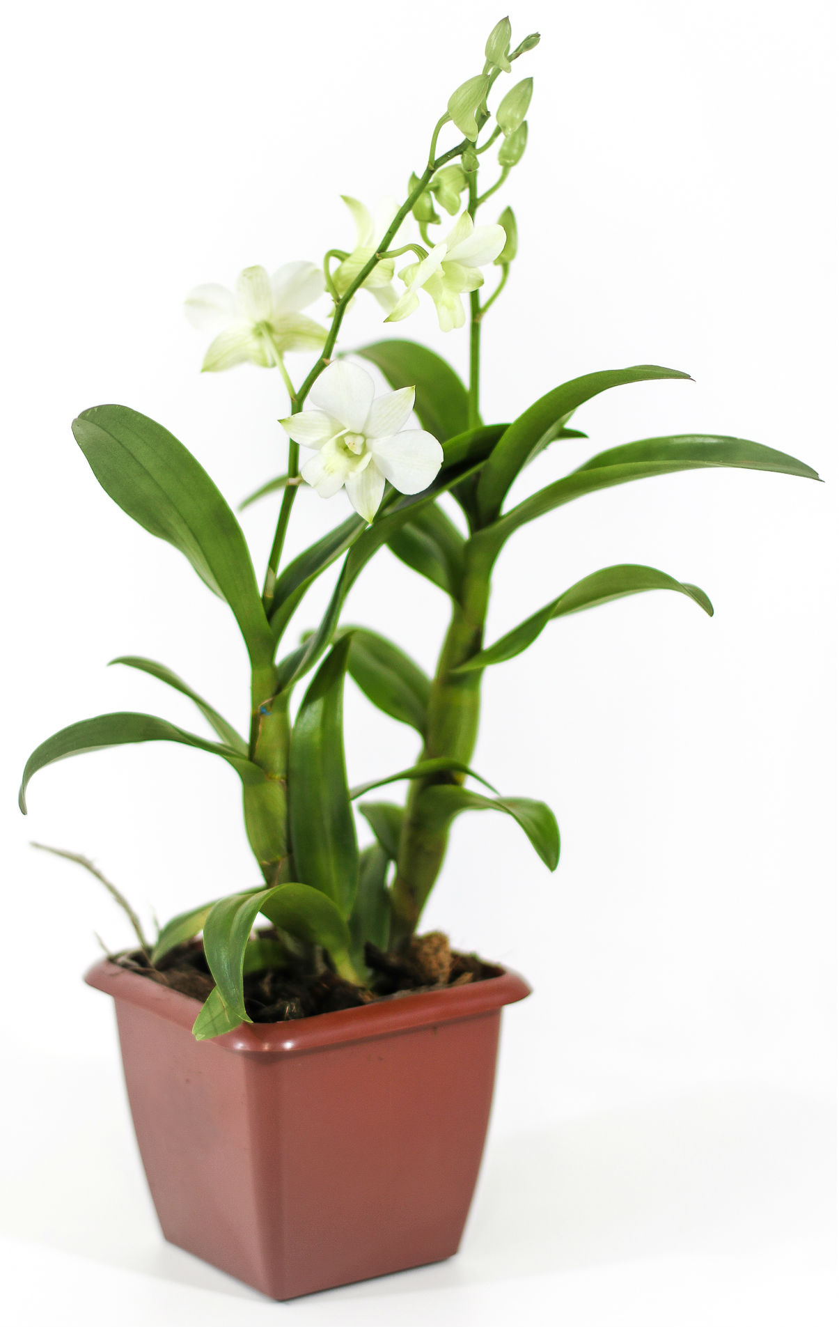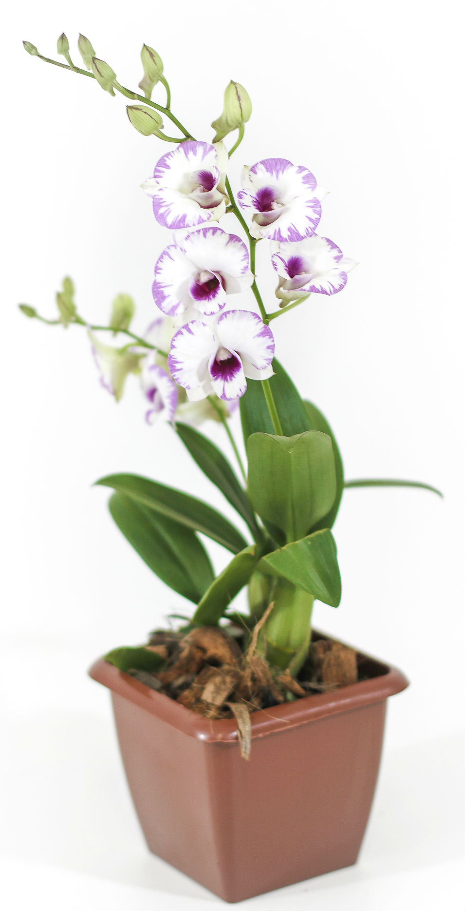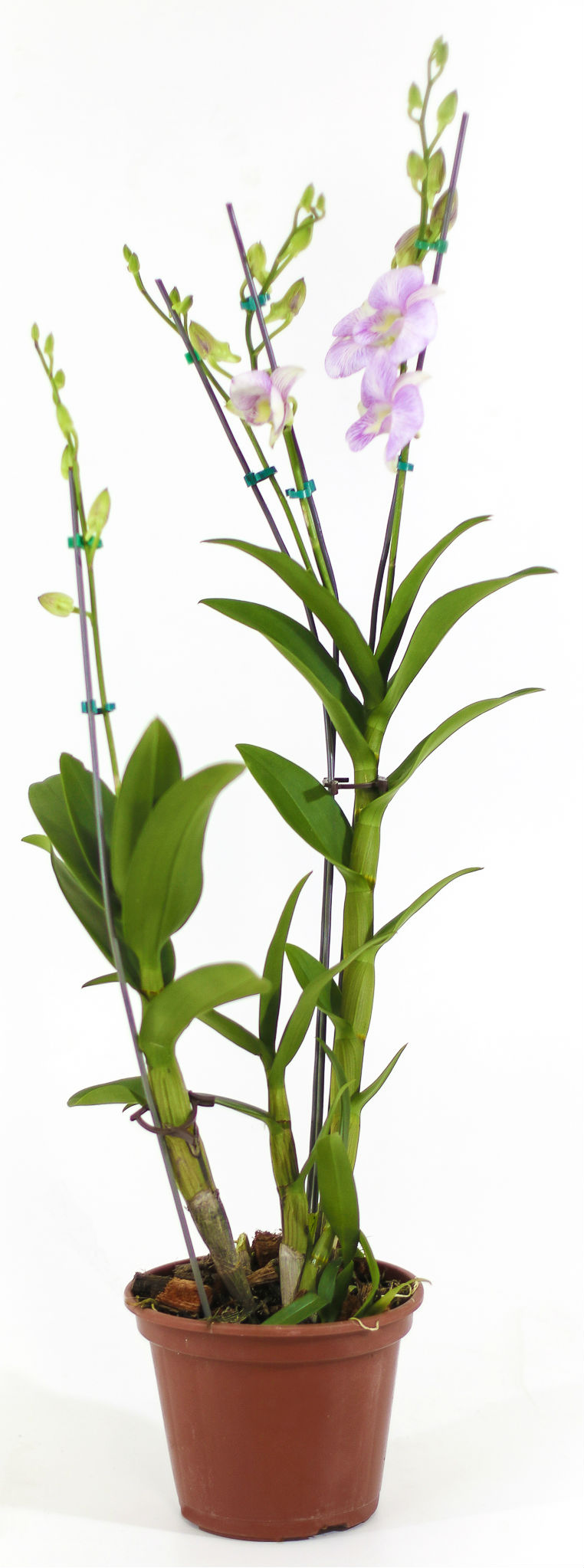 Denphal: Originária do Sudoeste da Ásia as mudas dessa orquídea apreciam altas temperaturas e boa luminosidade mas sem sol direto. Requer água 2 vezes por semana e não deve-se deixar água no prato pois a raiz pode apodrecer. Em caso de dúvida, coloque a ponta do dedo no substrato da orquídea, se estiver úmido não precisa regar. Suas flores duram em média 40 dias.