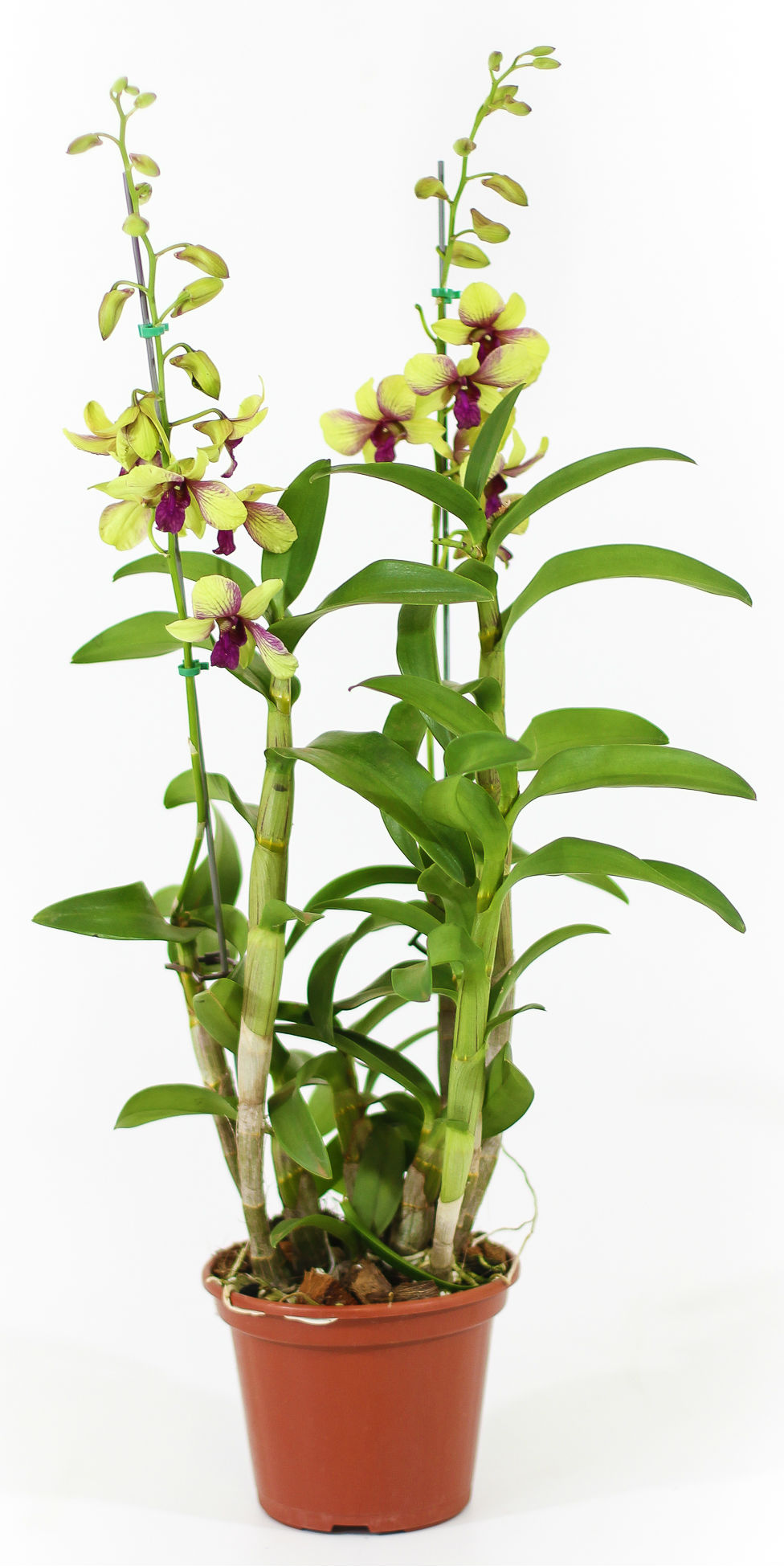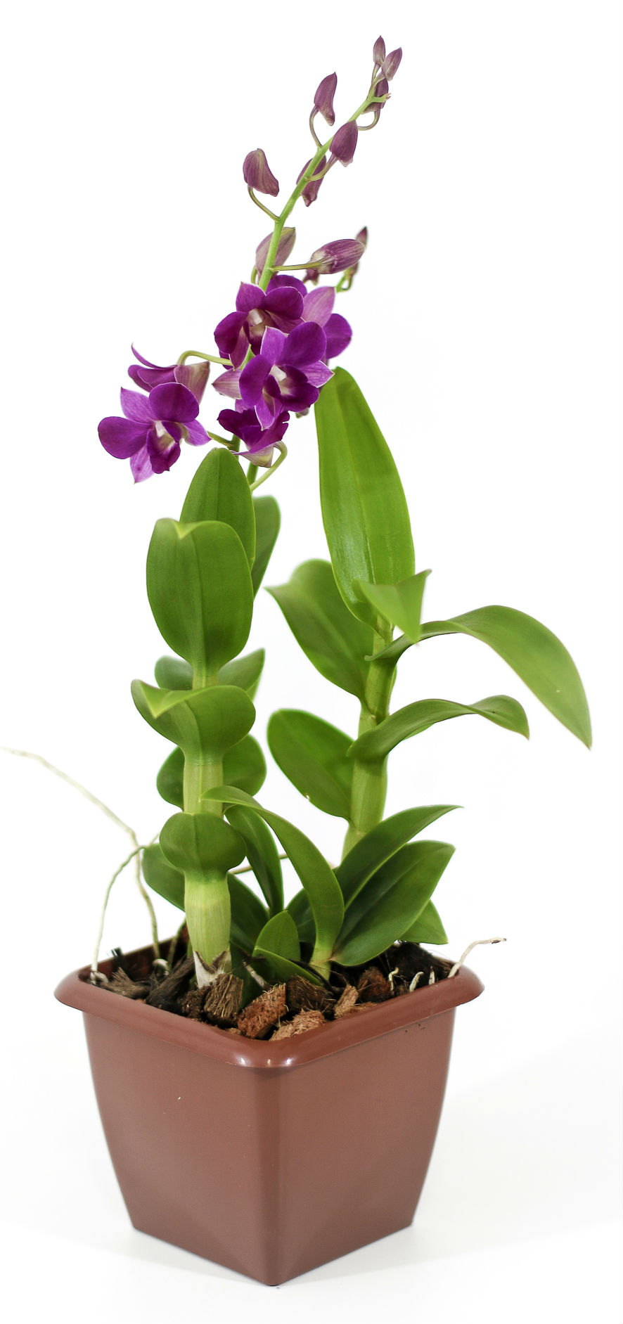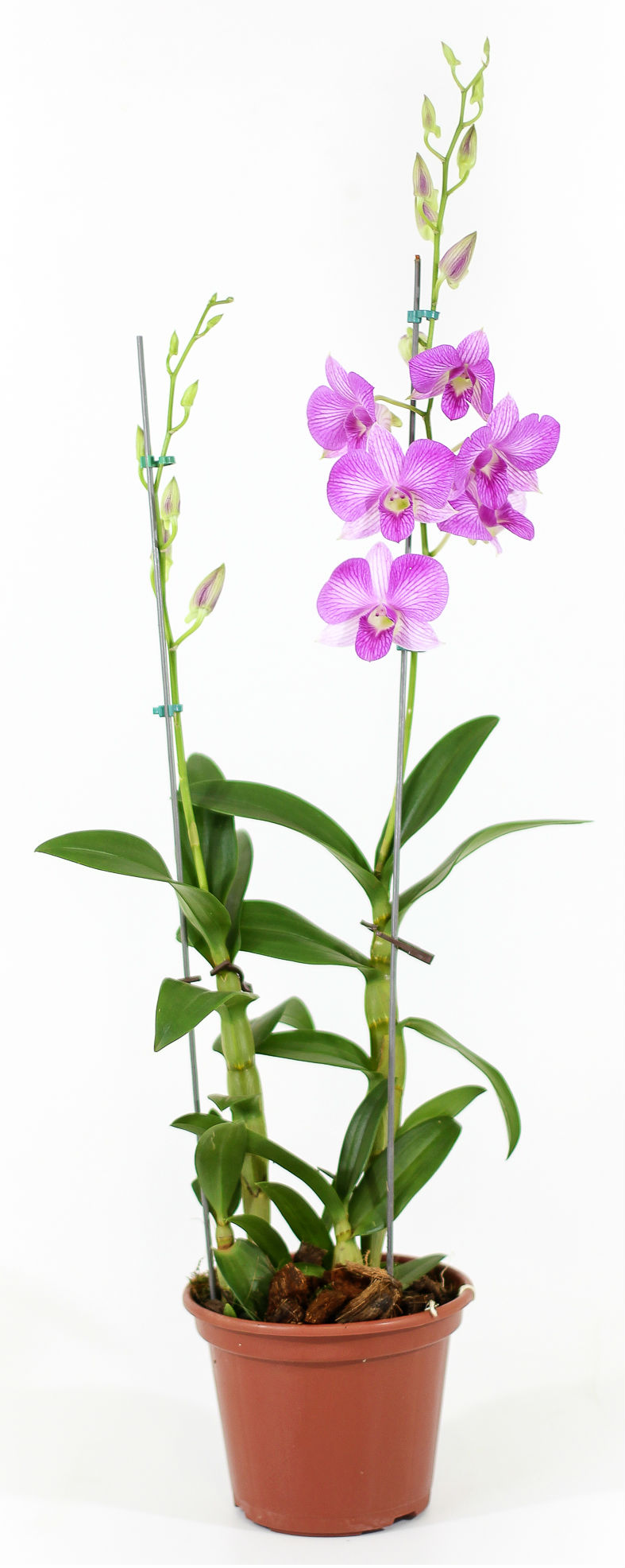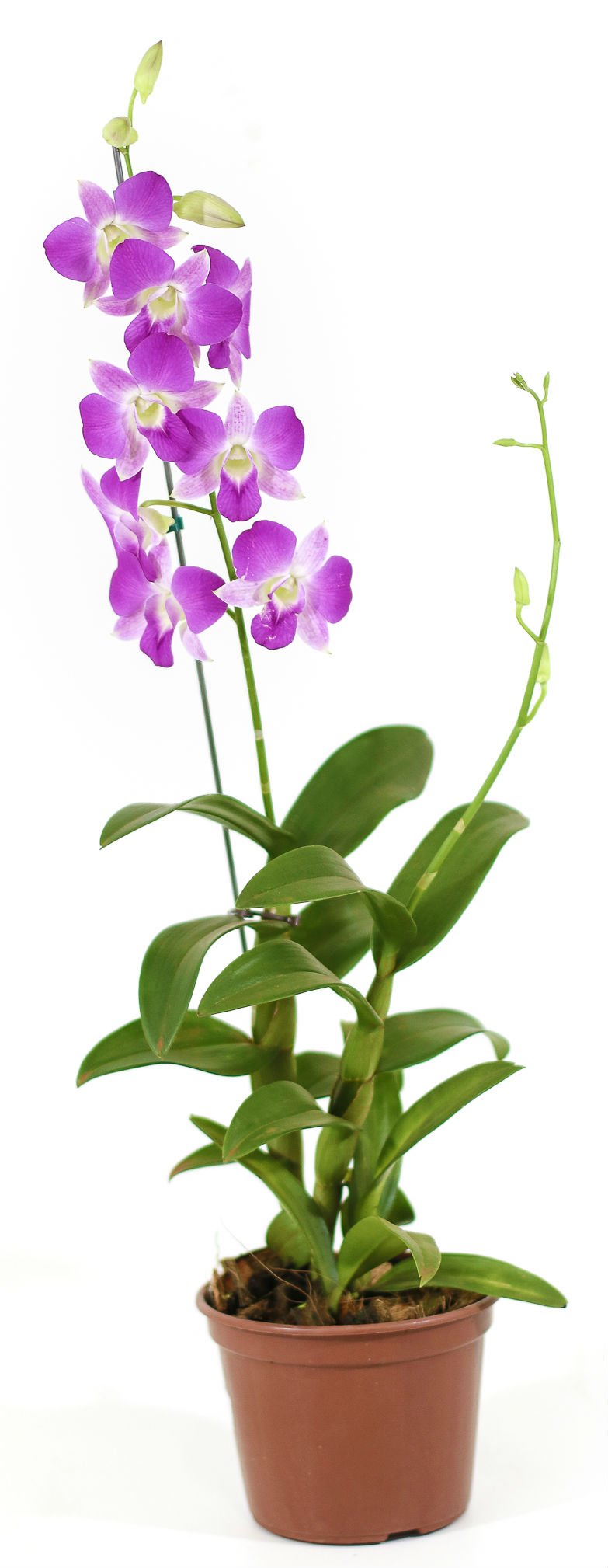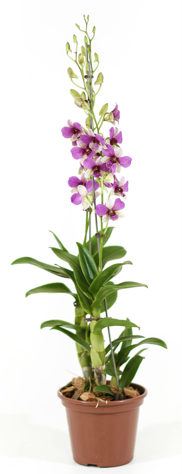 Denphal: Originária do Sudoeste da Ásia as mudas dessa orquídea apreciam altas temperaturas e boa luminosidade mas sem sol direto. Requer água 2 vezes por semana e não deve-se deixar água no prato pois a raiz pode apodrecer. Em caso de dúvida, coloque a ponta do dedo no substrato da orquídea, se estiver úmido não precisa regar. Suas flores duram em média 40 dias.