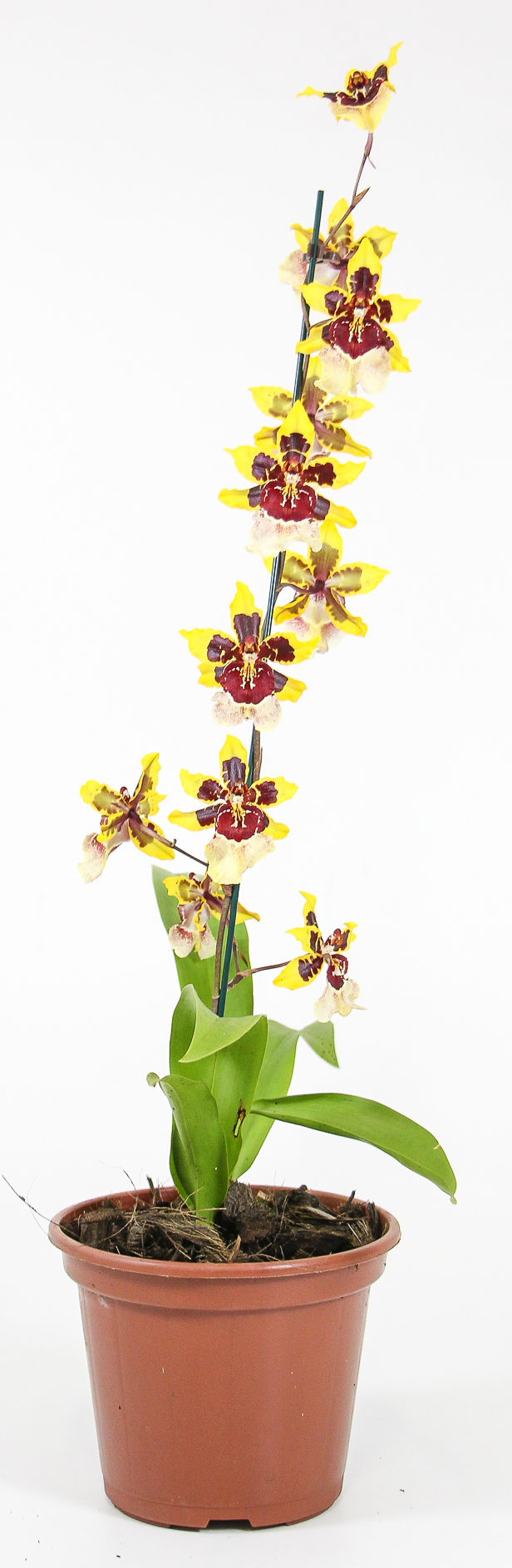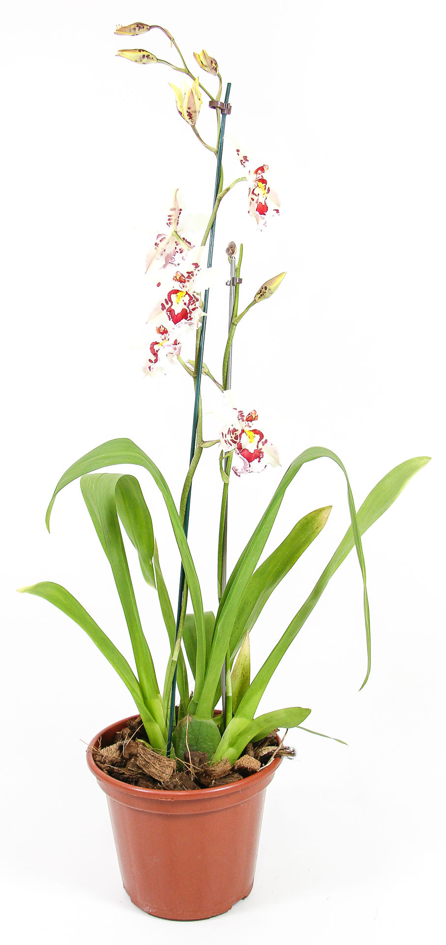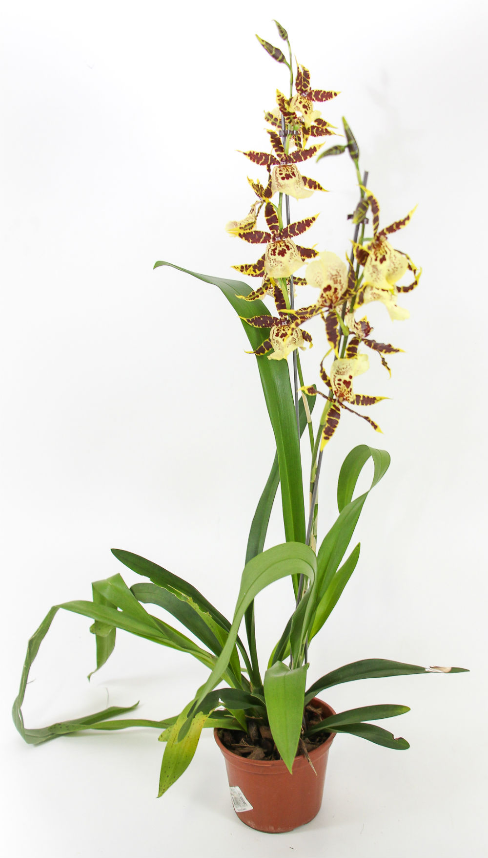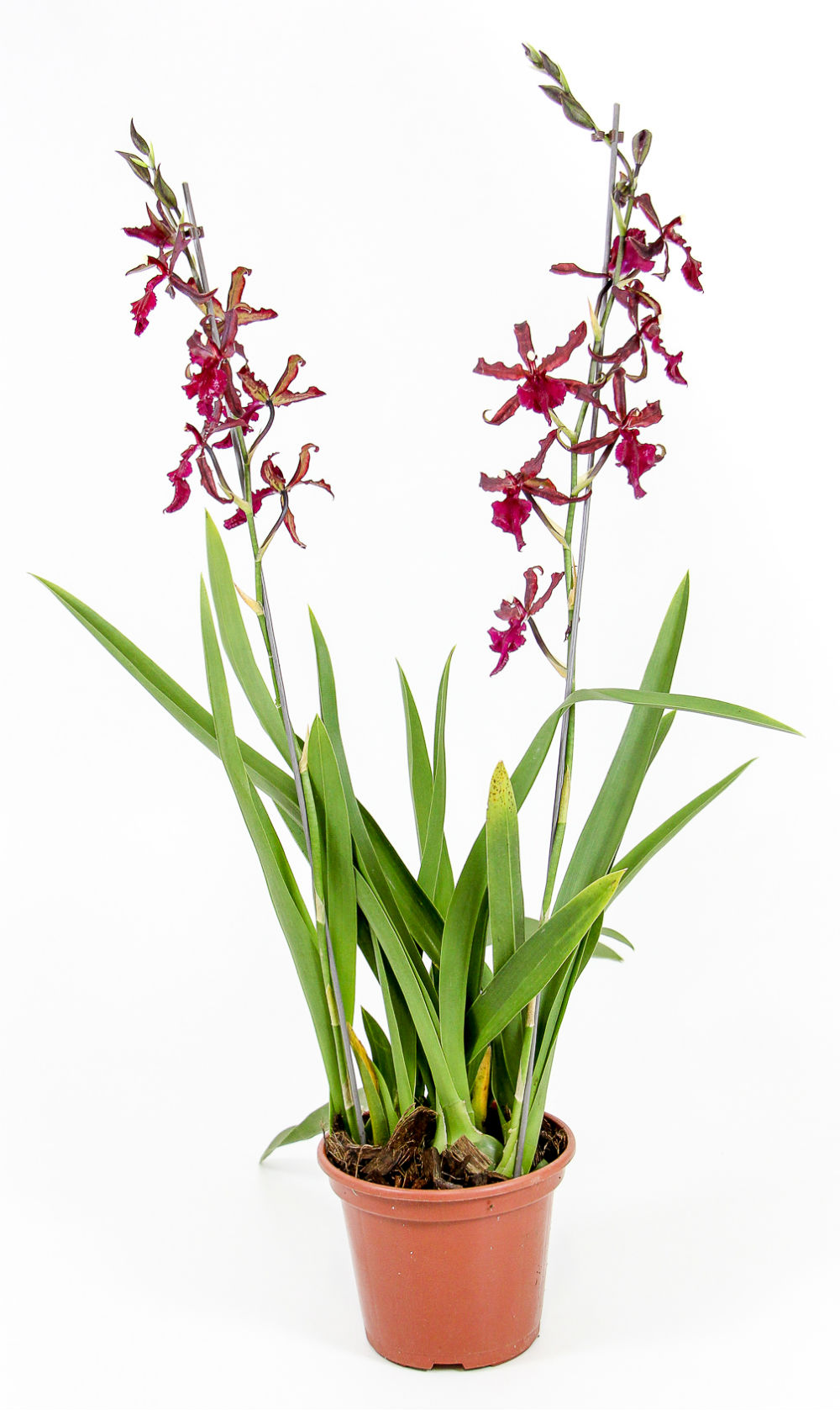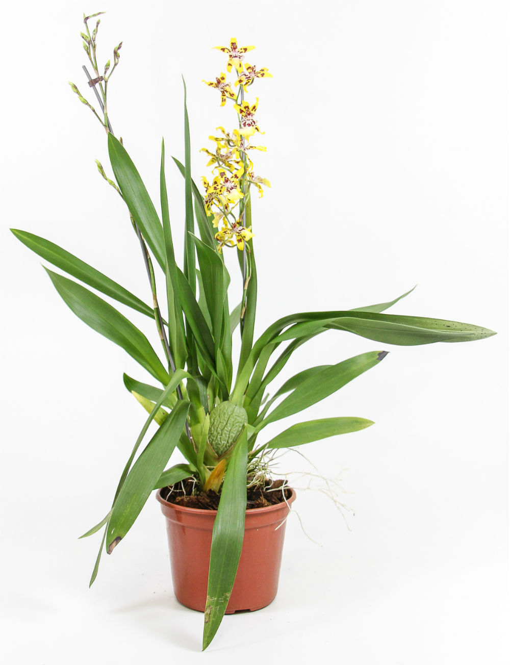 Oncidium: Gênero de orquídeas largamente distribuído do México ao sul da América do Sul. Essa orquídea possui as pétalas pequenas e delicadas. Em sua versão de flores amarelas é popularmente conhecida como Chuva de Ouro, já a versão em flores marrons leva o nome popular de Orquídea Chocolate. Mas é encontrada também nas cores verde, alaranjada, branca, rosas e não raramente tigradas. Cuidar de uma Oncidium é bastante simples, a orquídea necessita de água 1 vez por semana, deve-se escoar bem e nunca deixar água no prato pois a raiz pode apodrecer. Em caso de dúvida, coloque a ponta do dedo no substrato da orquídea, se estiver úmido não precisa regar. De fácil cuidado, pode ser considerada orquídea de apartamento e locais fechados. Suas flores duram de 20 a 30 dias.