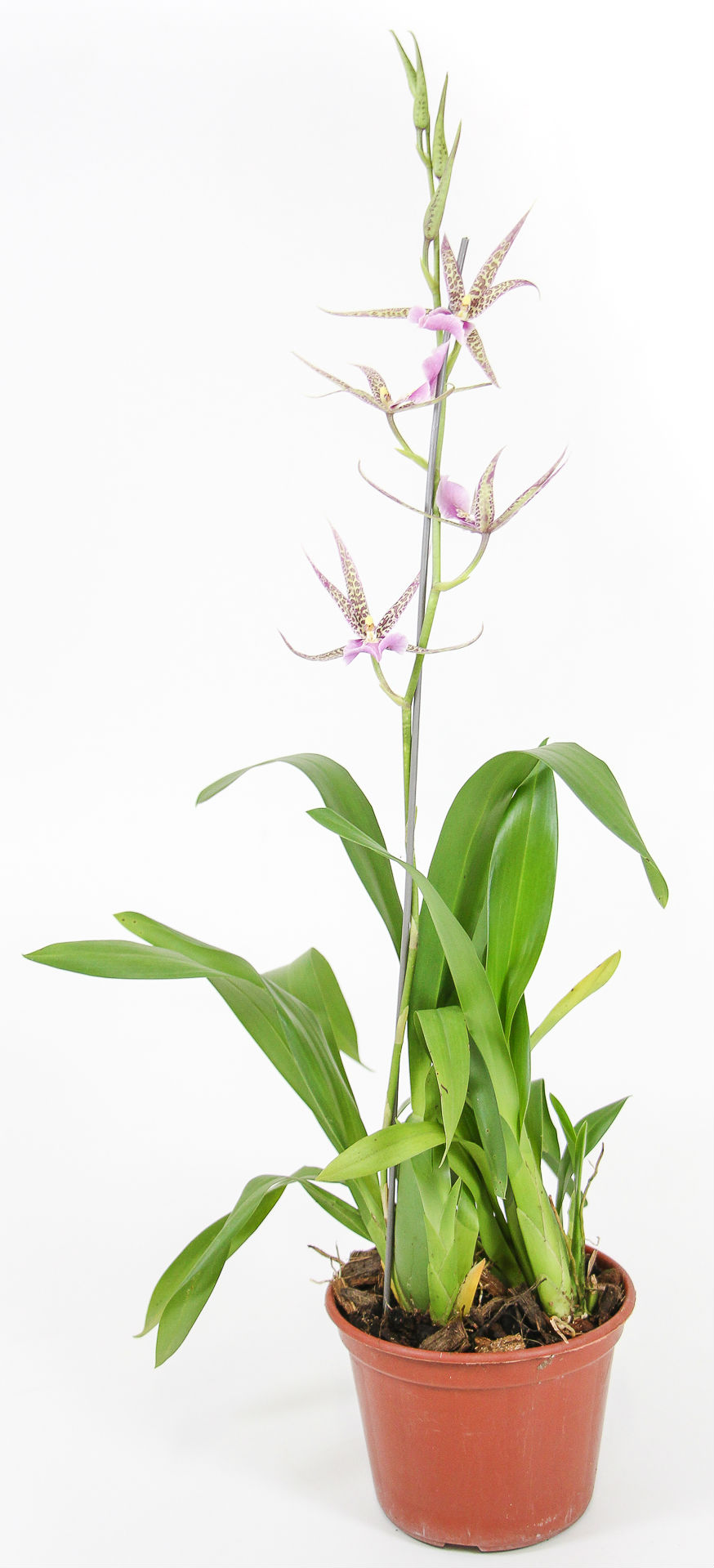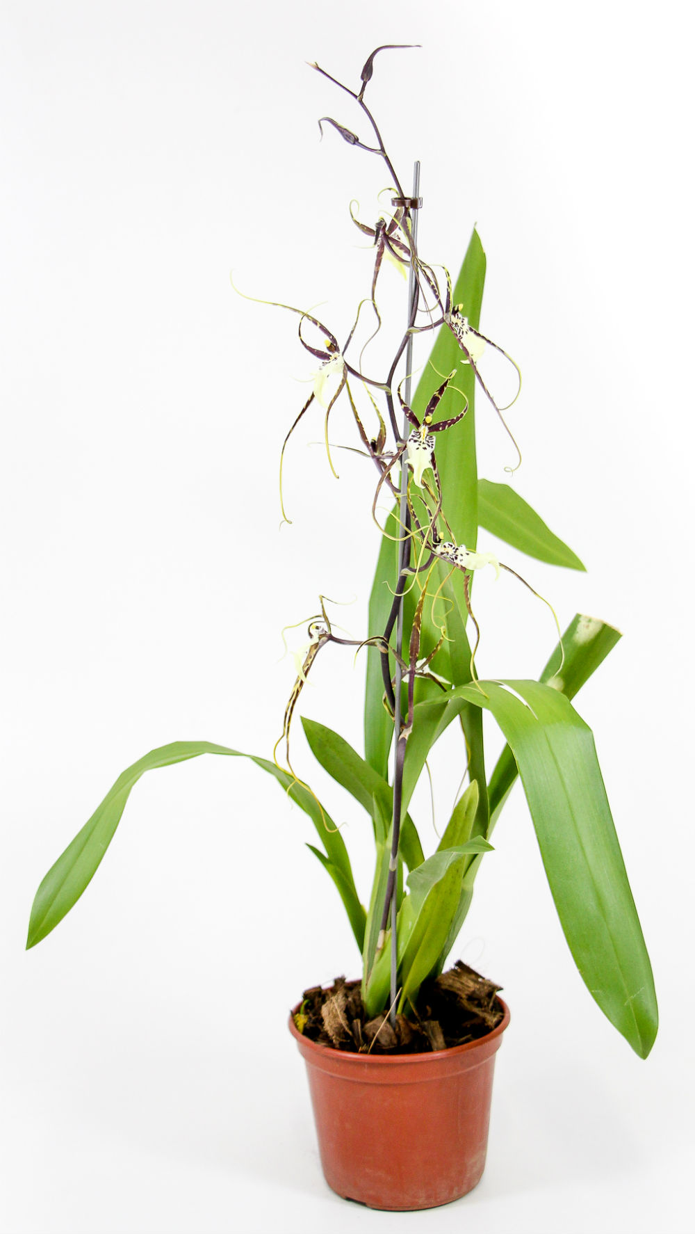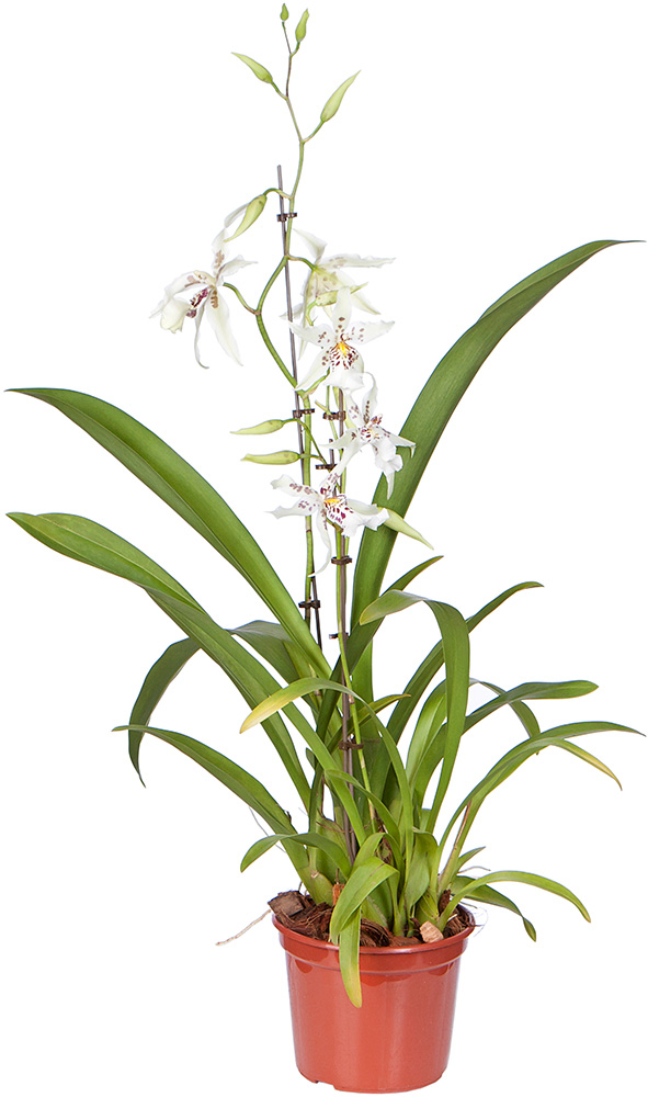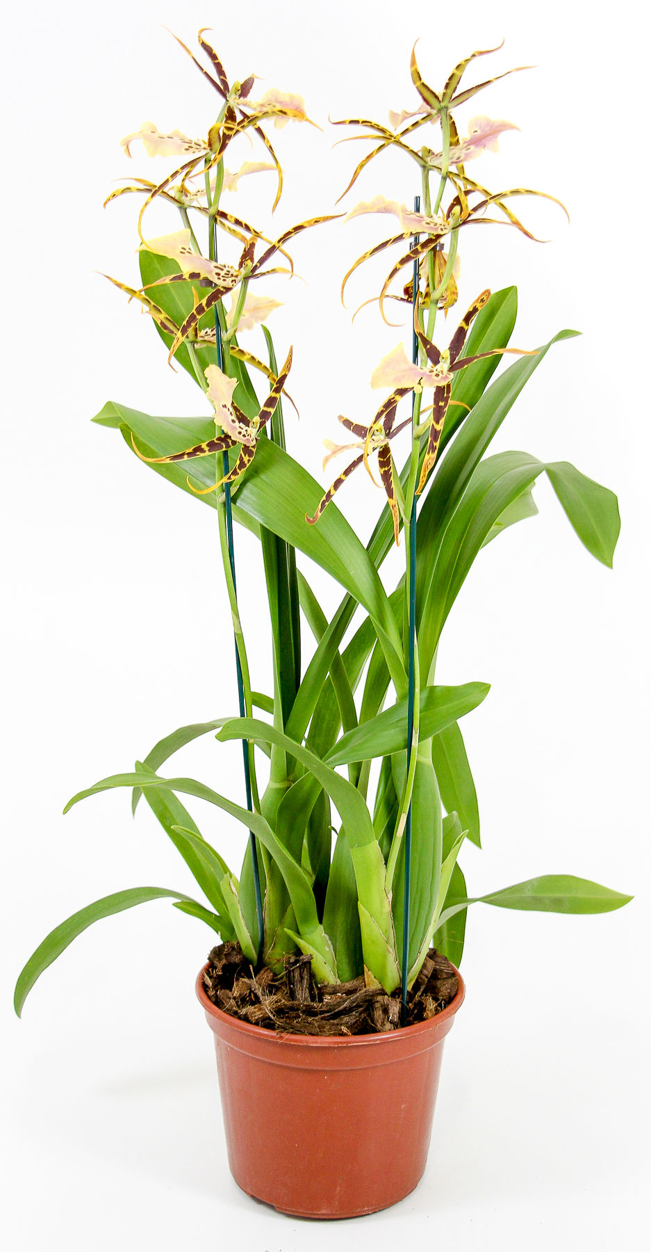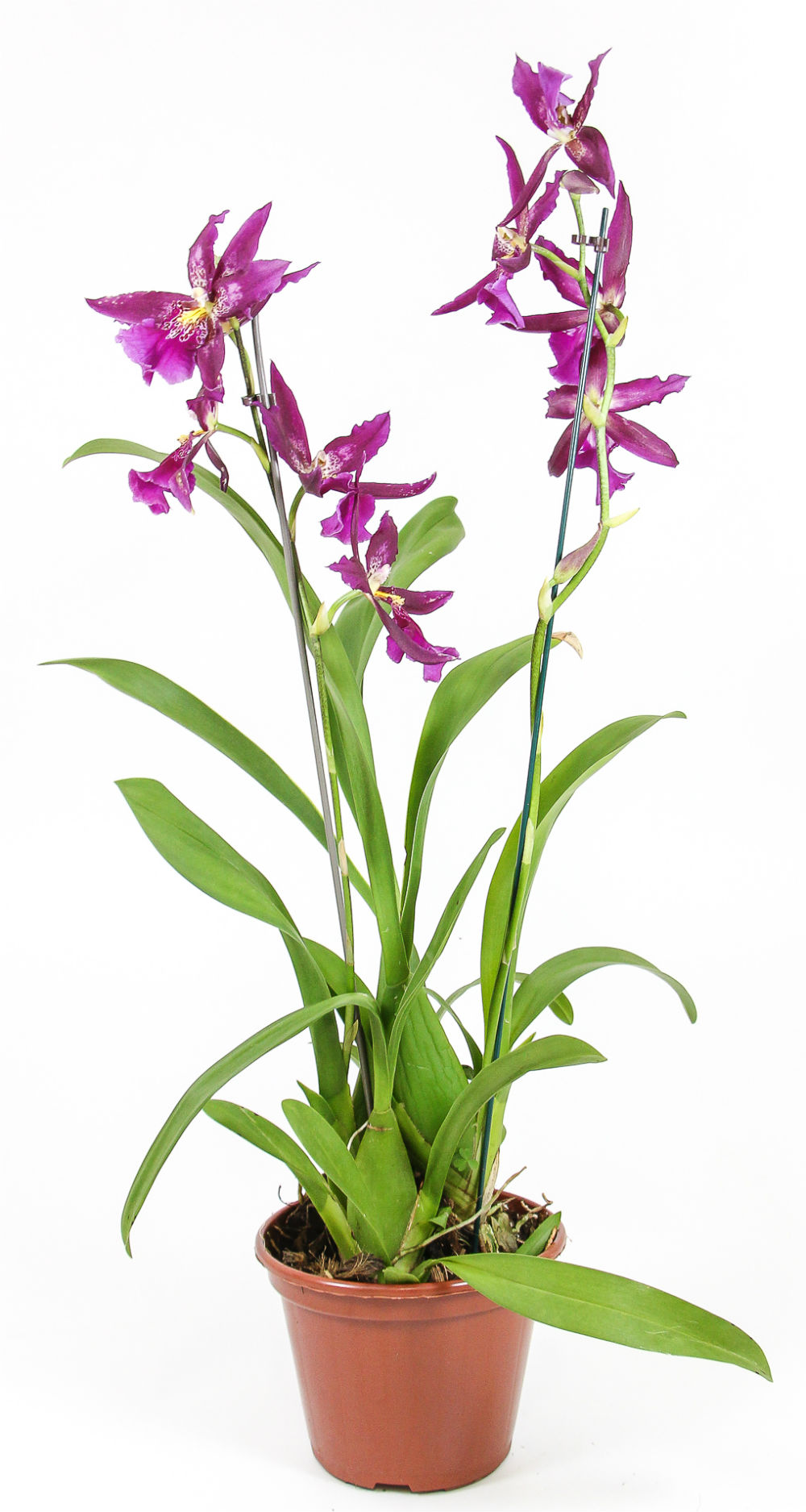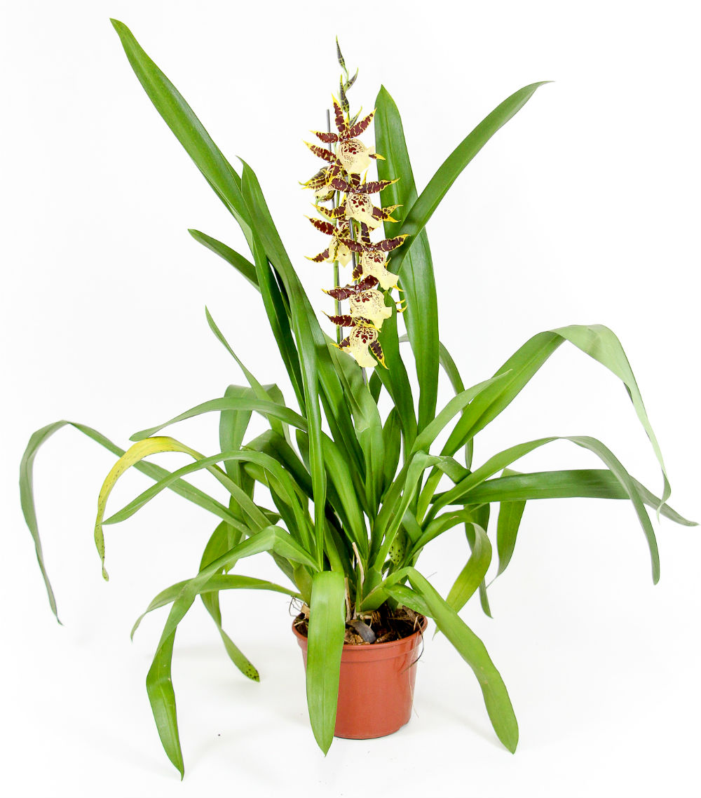 Oncidium: Gênero de orquídeas largamente distribuído do México ao sul da América do Sul. Essa orquídea possui as pétalas pequenas e delicadas. Em sua versão de flores amarelas é popularmente conhecida como Chuva de Ouro, já a versão em flores marrons leva o nome popular de Orquídea Chocolate. Mas é encontrada também nas cores verde, alaranjada, branca, rosas e não raramente tigradas. Cuidar de uma Oncidium é bastante simples, a orquídea necessita de água 1 vez por semana, deve-se escoar bem e nunca deixar água no prato pois a raiz pode apodrecer. Em caso de dúvida, coloque a ponta do dedo no substrato da orquídea, se estiver úmido não precisa regar. De fácil cuidado, pode ser considerada orquídea de apartamento e locais fechados. Suas flores duram de 20 a 30 dias.